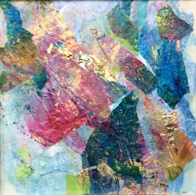 It's interesting to turn this to see which orientation looks best. Turn it 90 degrees in either direction and it suggests landscape (at least to me). Turn it upside-down and what do you see? (I see an underwater scene with an exotic tropical fish.) I settled on this way up (and added my signature to finalize it!) because it didn't suggest anything; it's more purely abstract.