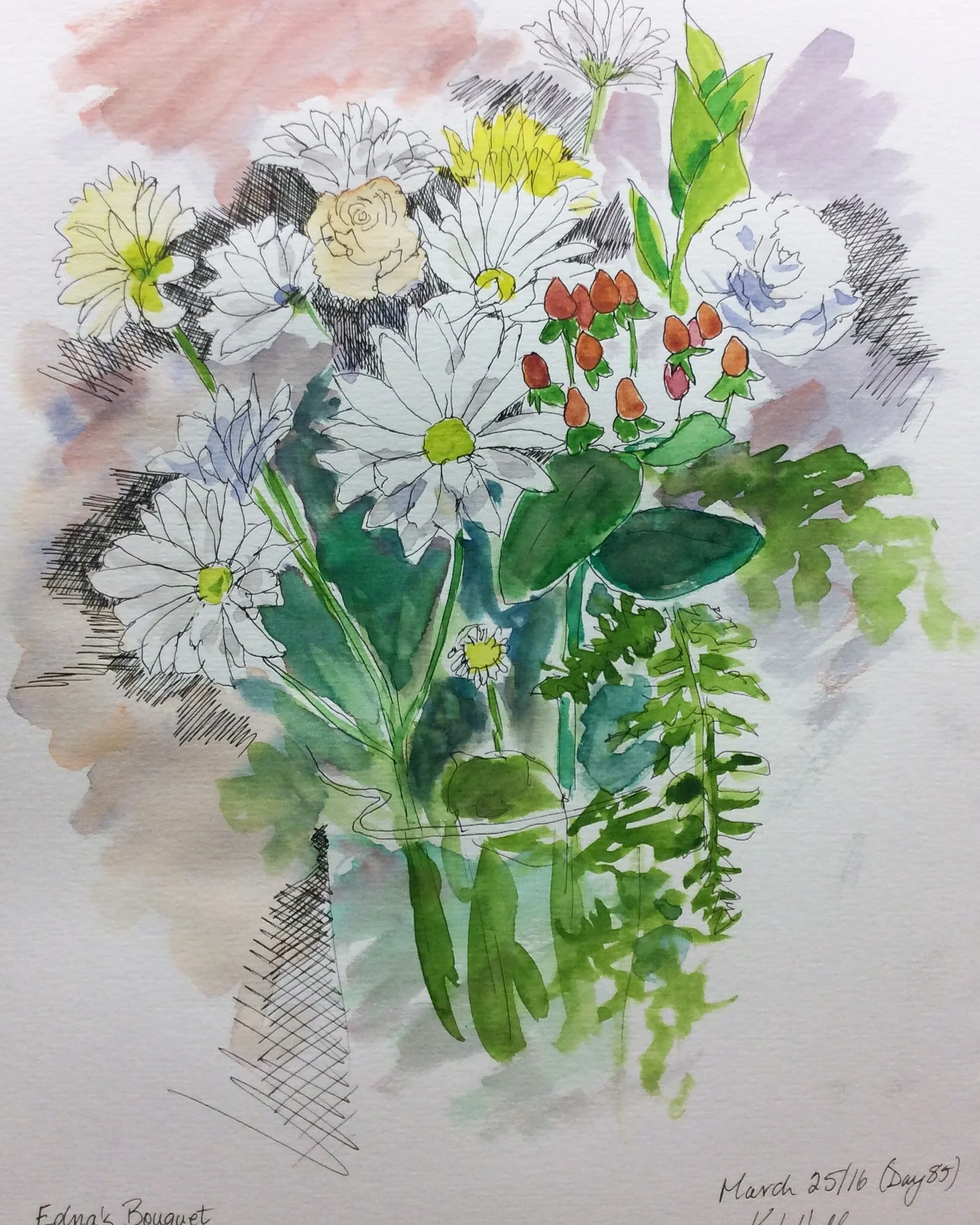 "Edna's Bouquet". Art journal, watercolour and ink.