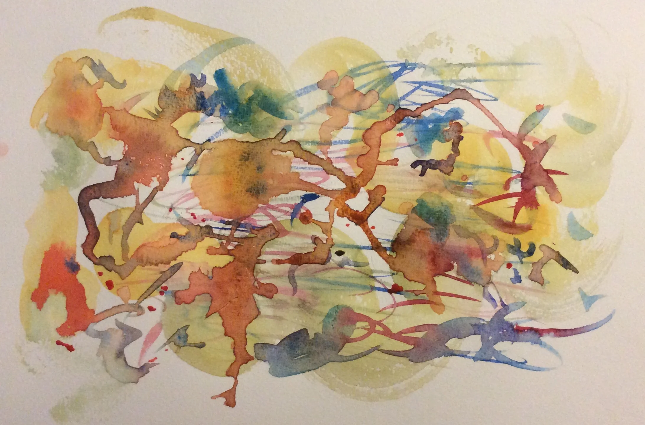 Today Alison and I drove to Ottawa, did a few errands there, then went up to check on our cottage, then came back to Alexandria on the back roads (plus a ferry). Hence the title of this bedtime watercolour doodle.