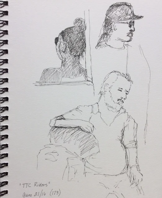 Quick sketches of riders on streetcar/subway this evening.