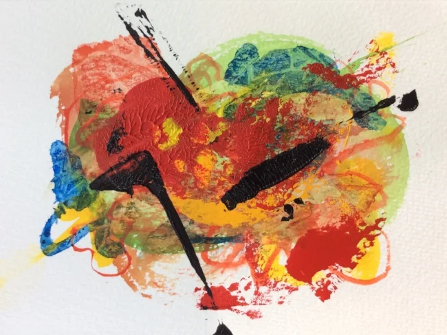 Day 224 August 11, 2016 View fullsize Watercolour doodle notecard, this time with some acrylic paint too.