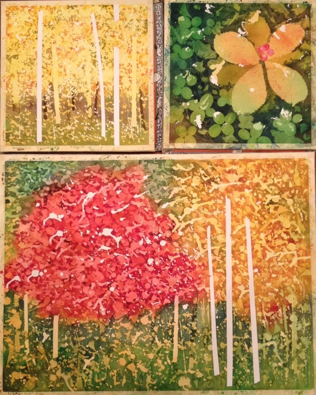 I finished peeling the masking off these today, with the help of some patrons of the Riverdale Artwalk. I had fun chatting with people and explaining this crazy technique of mine. These need some refining now, but I'm in no hurry; I'm all watercoloured out for now!