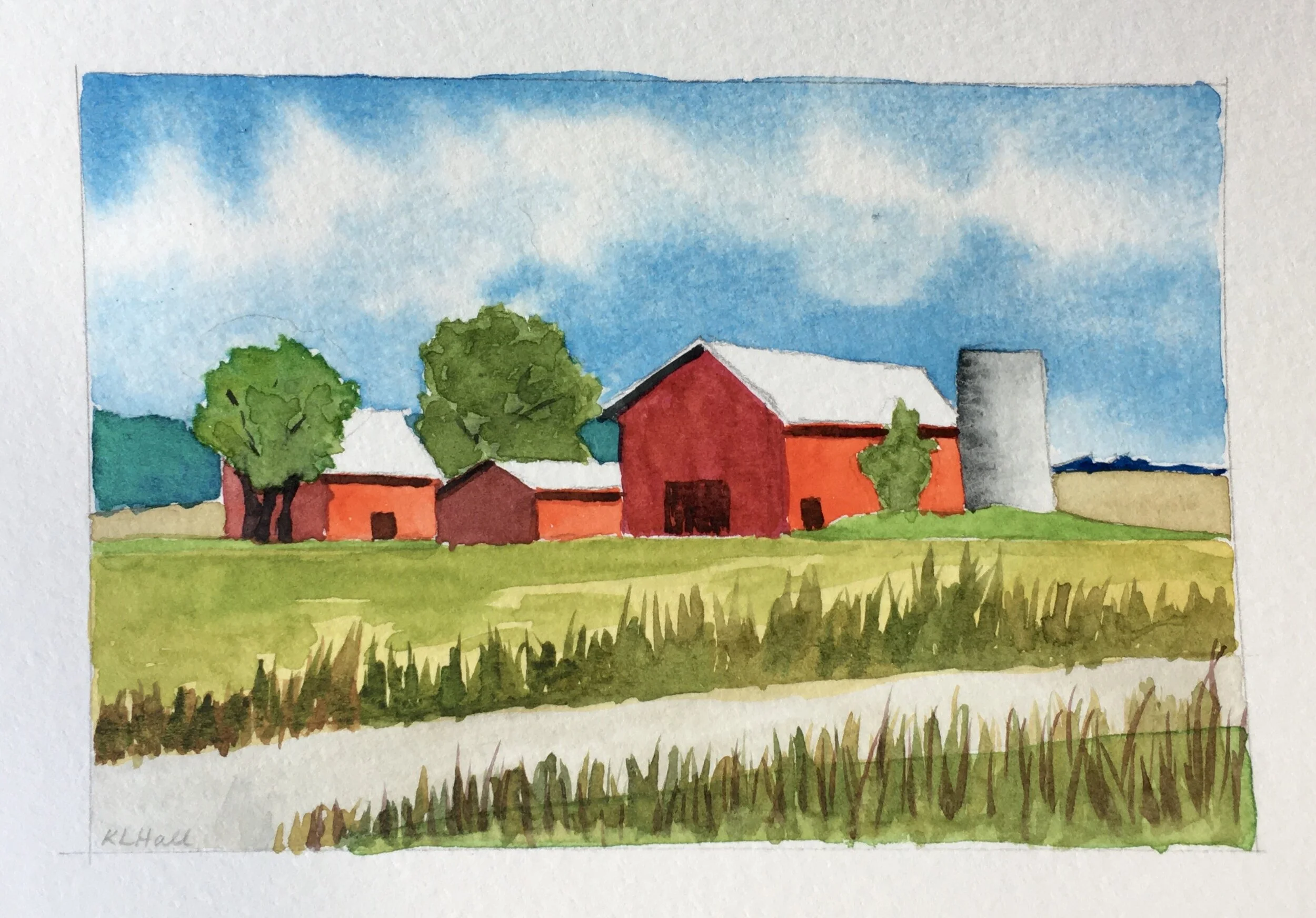 Today I went for a drive to explore some of the quiet country roads north of here. I parked at the side of the road to sketch this with ink, and added some watercolour when I got home.