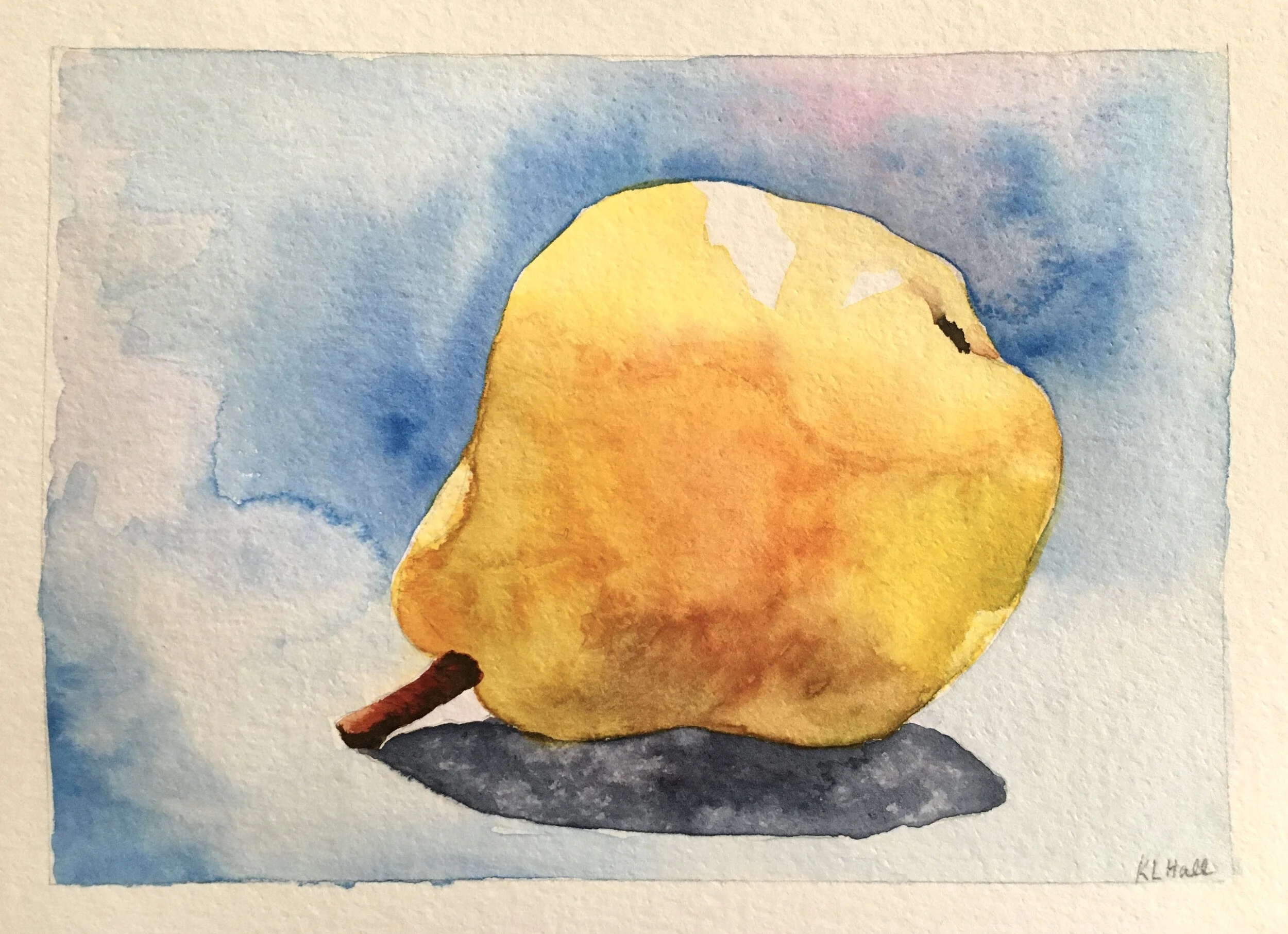 This is the same pear I drew the other day, this time rendered in watercolour on a note card.