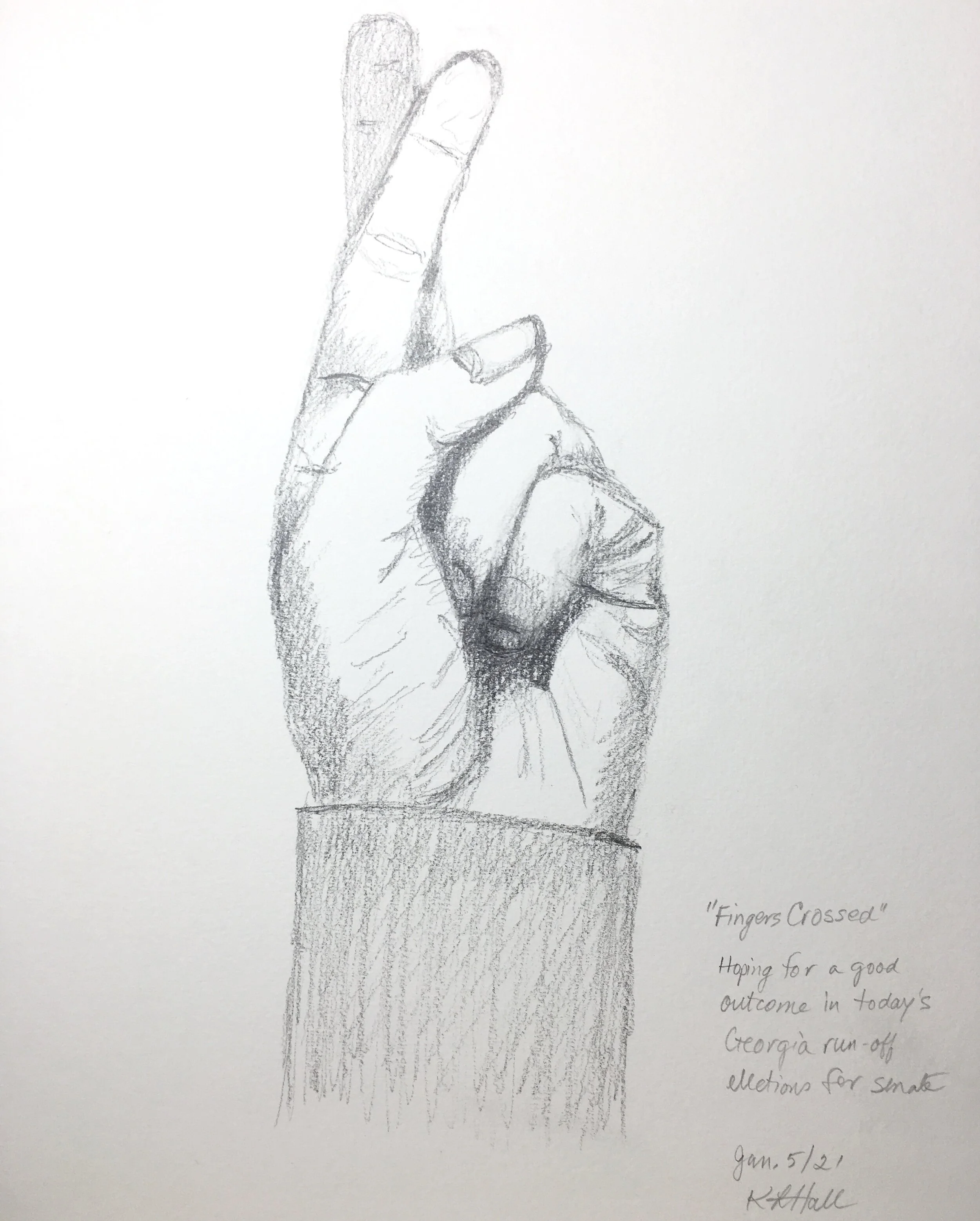 A bit distracted by the senate run-off election results coming in this evening from Georgia, I did a quick drawing of my left hand expressing my wish for a good outcome.